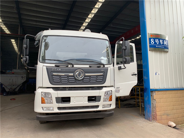 底盤配置:東風天錦駕駛室,康明斯180馬力,法士特小8檔變速箱,5000mm軸距,10.00R20,18PR鋼絲胎,電動門窗,中控鎖,ABS,方向助力,空調(油耗24L\100km)