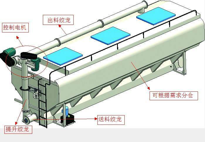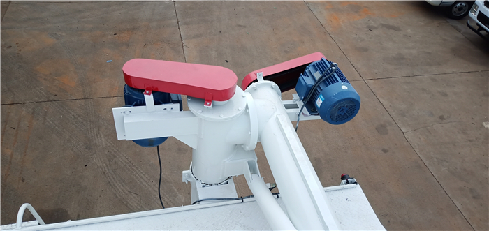 上裝罐體:罐體材質(zhì)采用4mm優(yōu)質(zhì)碳鋼板,整車3條絞龍,由3個5.5KW電機(jī)380V外接電源帶動頂部絞龍用液壓控制舉升,可左右旋轉(zhuǎn)180°。罐體內(nèi)分為四個倉,可以獨(dú)立控制各分倉卸料順序和速度。(備注:此報價為標(biāo)配,國產(chǎn)電機(jī),德力西電柜)