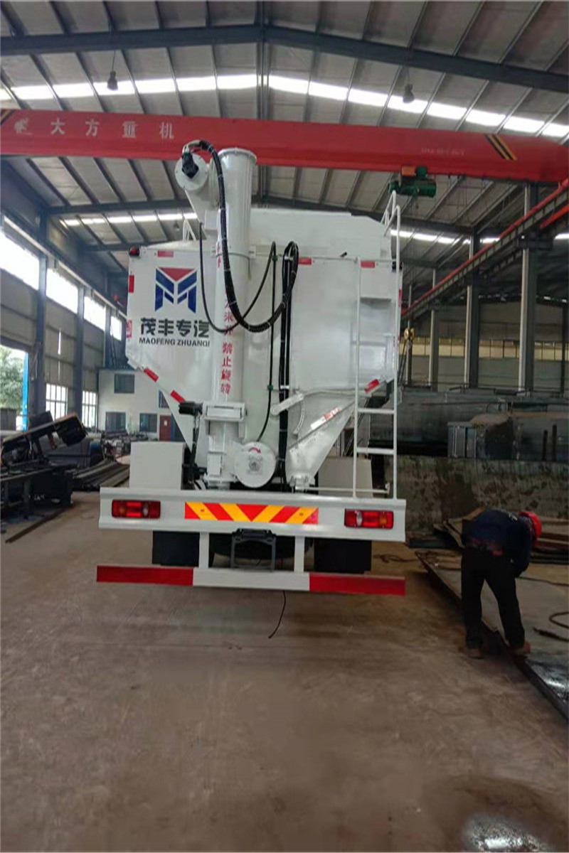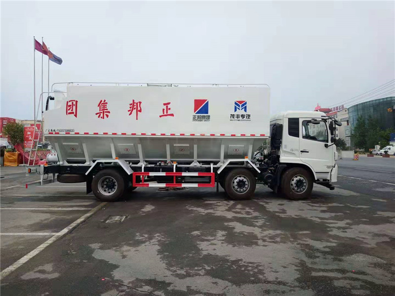 此種運輸車廣泛應用于輸送距離遠(長距離)、卸料快、殘留量低、對物米料無污染等特點;而且,車輛不進場就可完成送料進料塔的工序,杜絕了養(yǎng)殖場車輛進場防疫問題;廣泛應用于各類養(yǎng)殖企業(yè)、飼料加工企業(yè)。